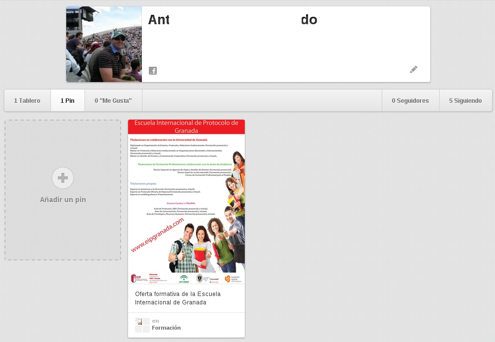 Completando estas simples instrucciones ya ha dado sus primeros pasos en Pinterest y una vez puesto en marcha su perfil, si lo desea le invitamos a que siga a la Escuela Internacional de Protocolo de Granada en Pinterest en: http://pinterest.com/protocologr/