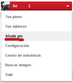 Haga «clic» en el item «Añadir pin» del menú desplegable que aparace bajo su nombre y verá que existen dos formas de «pinear» un contenido en Pinterest, bien a partir de la URL del recurso, bien cargando una imagen almacenada en la memoria del dispositivo desde el cual esté accediendo a la red social.