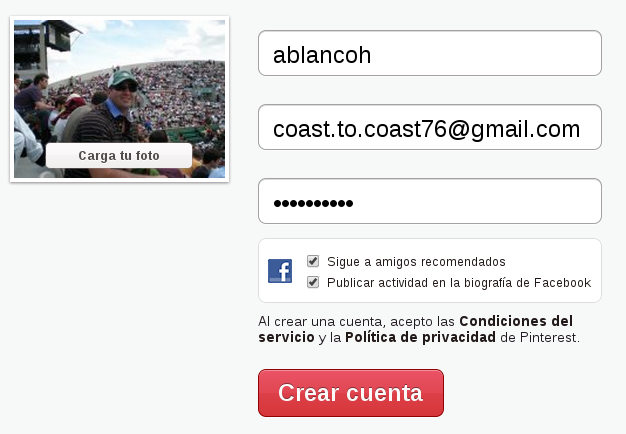 Registrarse en Pinterest