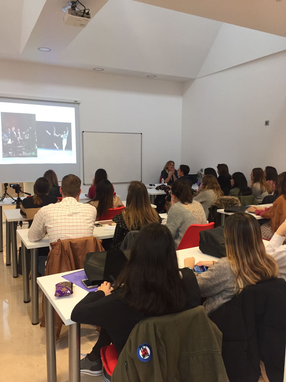 Este miércoles dentro del ciclo de conferencias que ofrece la Escuela Internacional de Protocolo de Granada a sus alumnos de Diplomado en Organización de Eventos, Protocolo y Relaciones Institucionales, Elena Cazorla, gerente del Festival Internacional de Música y Danza de Granada, ha visitado nuestra sede de Casa Zayas.