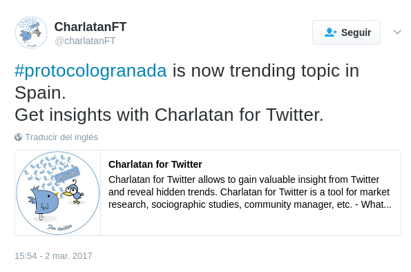 Get insights with Charlatan for Twitter.https://t.co/wDPgqaPw4G— CharlatanFT (@charlatanFT) March 2, 2017