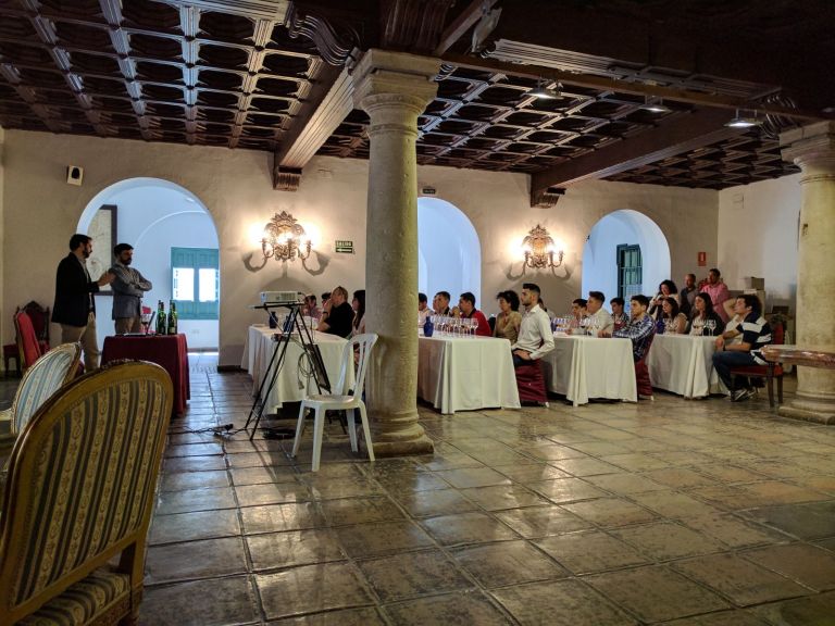 (FOTO 4) Se eligieron mediante un proceso de cata a ciegas por un panel de reconocidos catadores los vinos que serán los embajadores de la D.O.P. Montilla-Moriles a la hora de la promoción de los mismos. Estos tendrán un distintivo en la etiqueta y las bodegas deberán ceder parte de la producción al Consejo Regulador para sus actividades de promoción. Hasta ahora no se había conocido el nombre de los vinos que habían ganado, este año se rompe con esa tradición y se diseña un distintivo para cada botella, conservando la marca para que sea reconocible y pase del anonimato a su máxima difusión por ser el vino-tipo que se busca conseguir.