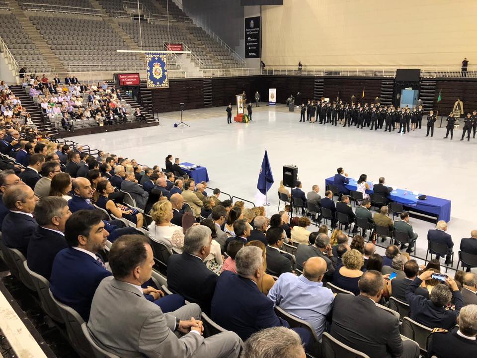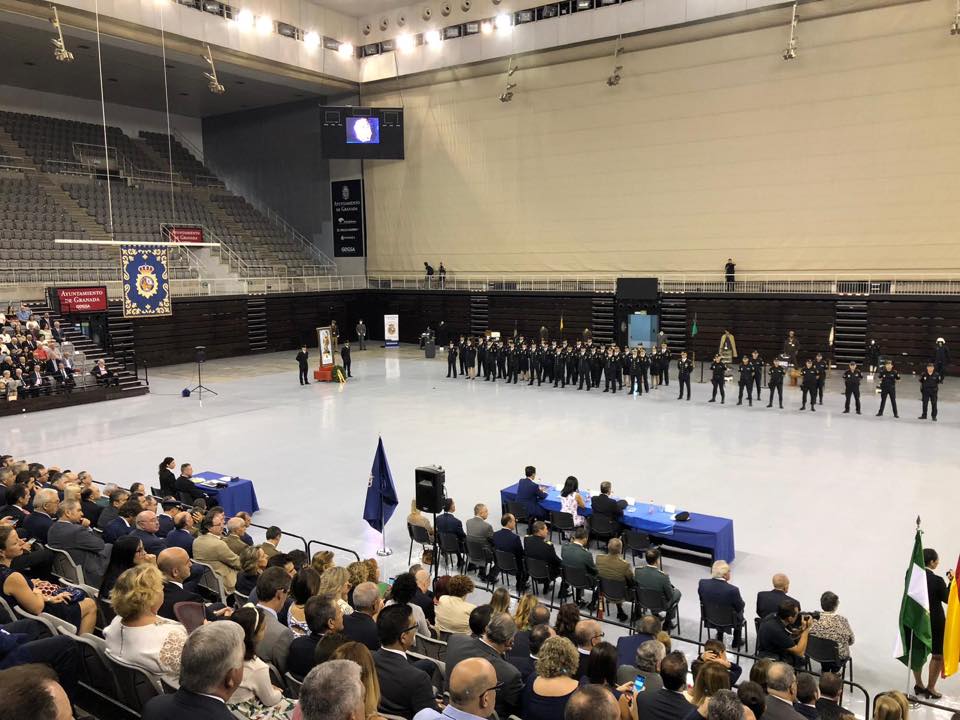 Este mañana en el Palacio de Deportes de Granada se han celebrado los actos con motivo de la conmemoración del día de los Santos Ángeles Custodios, Patrones de la Policía Nacional. Un acto solemne y cargado de emotividad, que, como viene siendo tradicional desde hace muchos años, ha contado con la presencia de los profesionales y alumnos de la Escuela Internacional de Protocolo, y en el que se han impuesto condecoraciones y distinciones a los funcionarios policiales destacados en el ejercicio de sus funciones.