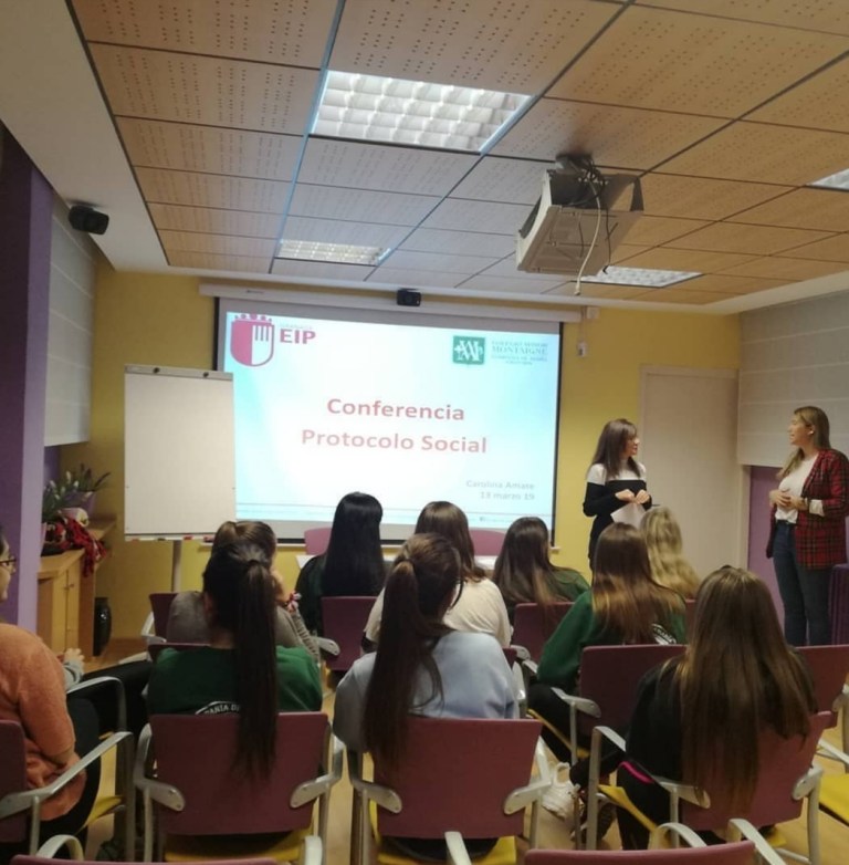 Durante cuatro miércoles por la noche, Carolina Amate, miembro del Staff de a Escuela Internacional de Protocolo de Granada, ha impartido una serie de conferencias para dar a conocer el mundo del protocolo y los eventos a las colegialas del Colegio Mayor Montaigne de Granada.