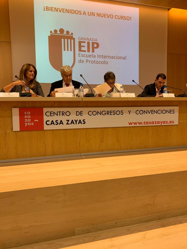 En la tarde del lunes, 7 de octubre, ha comenzado el curso académico 2019-2020 en la Escuela Internacional de Protocolo de Granada con un acto inaugural que ha tenido lugar en nuestro auditorio. El profesor José Sánchez, que ha presidido la mesa, ha abierto el acto saludando a todos los presentes y presentando al resto de miembros de la misma: Manuela Suárez Pinilla, directora de la Escuela Internacional de Protocolo de Granada, Julia Vañó Esteban, subdirectora y Juan Carlos López Alonso, jefe de estudios.