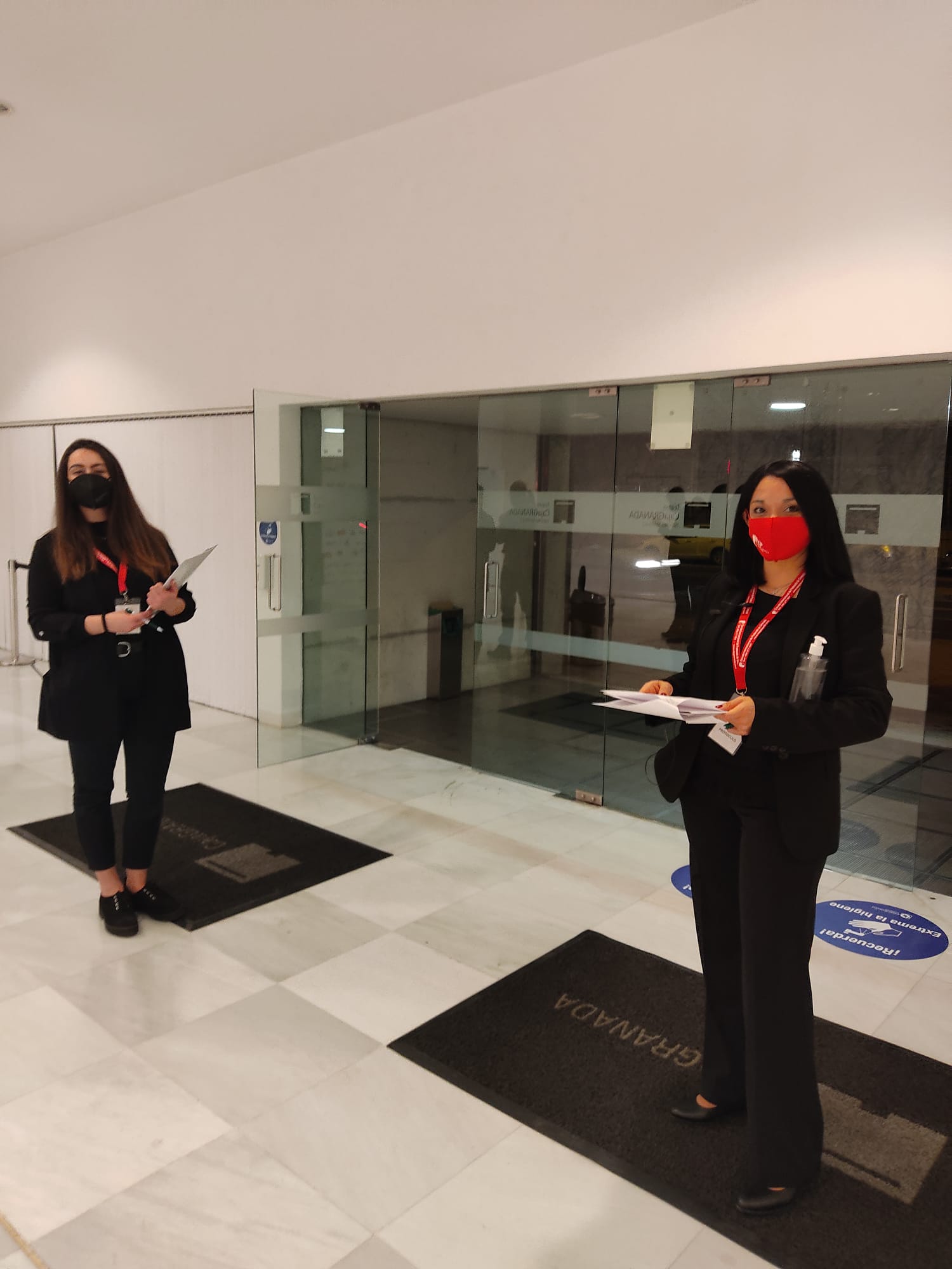 Una importante representación de profesionales y alumnos de la Escuela Internacional de Protocolo de Granada, formada por Denisa Georgiana Stan, Ana Romero González, María Victoria Martínez Urueña, Irene Castillo, Giorgia Sampietro, Lucía Navarro Sanz, Andrea del Cueto, Melisa Noelia Leal, María Chacón Mascaray, Jorge Vega Polinario, Cristina Rodríguez Martínez y Ángeles Figueroa (coordinadora), velaron porque todos los aspectos organizativos de la “premiere” de este prominente proyecto de TwinClick Comunicación” se desarrollase de forma impecable y memorable con todas las garantías de seguridad.