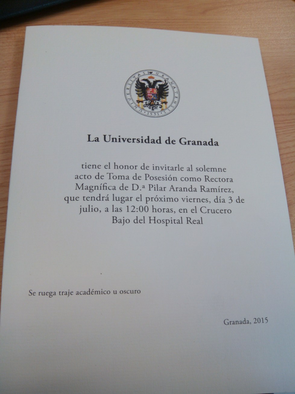CONVOCATORIA: Solemne Acto de Toma de Posesión de Pilar Aranda Ramírez como rectora de la UGR #protocolouniversitario